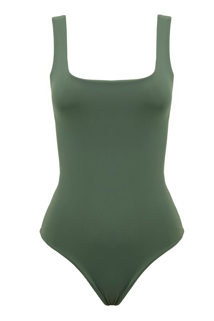 Traje entero básico sin costuras color verde jade.