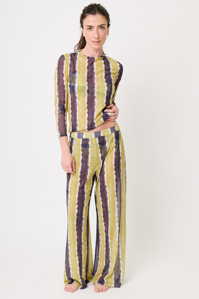 Pantalón con resorte en cintura de mesh estampado en amarillo tie dye