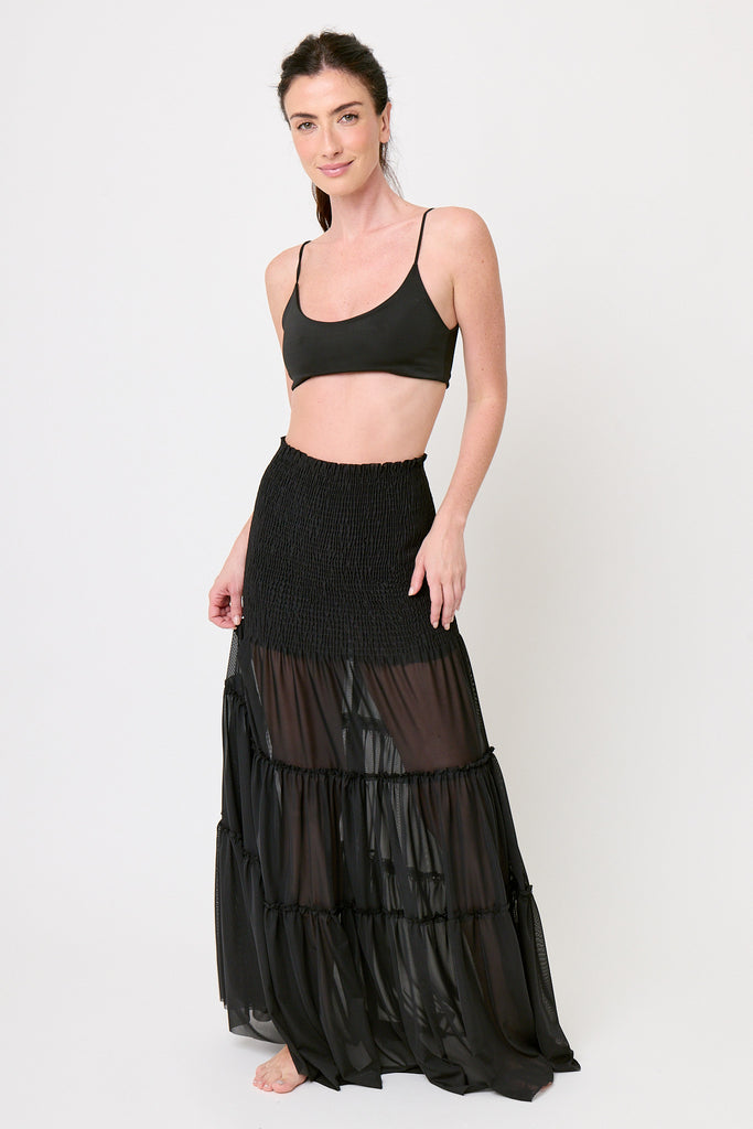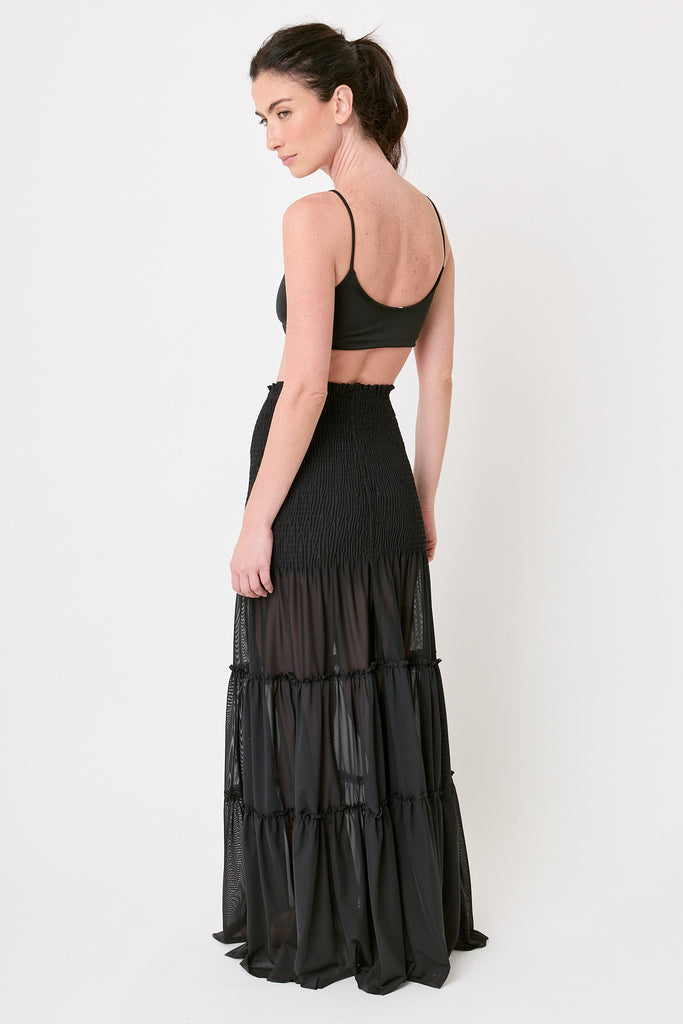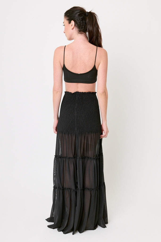 Falda de mesh con enresortado en la parte de la cadera en color negro
