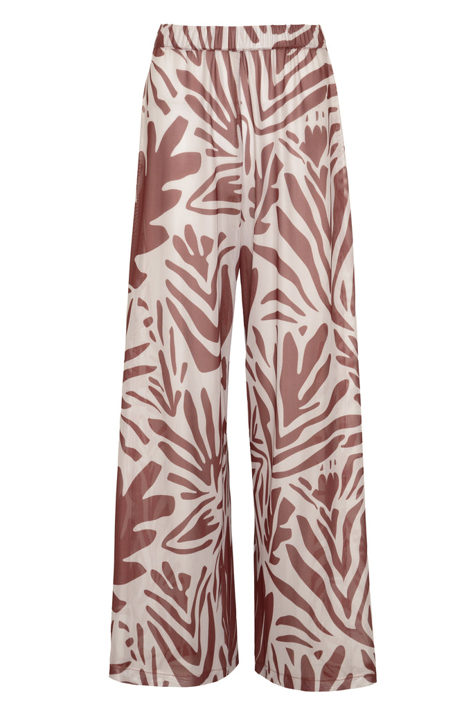 Pantalón con resorte en cintura de mesh estampado en plantas ocre