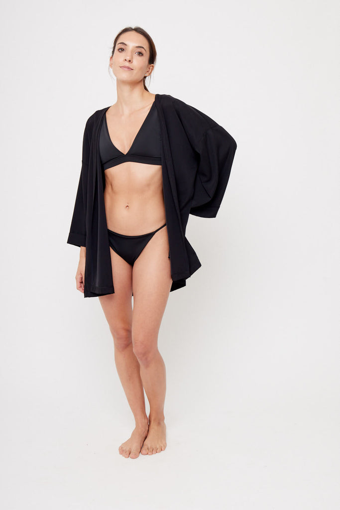 Top de escote en "V" con resorte en la parte inferior y abierto en la parte de atrás en color negro