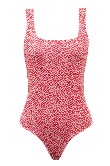 Traje entero básico sin costuras con estampado de escamas rojo.