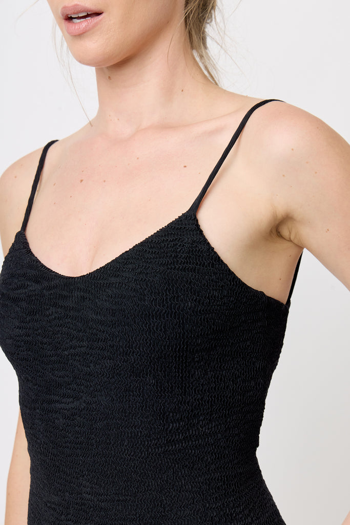 Traje entero con escote de tiras en la espalda color negro.