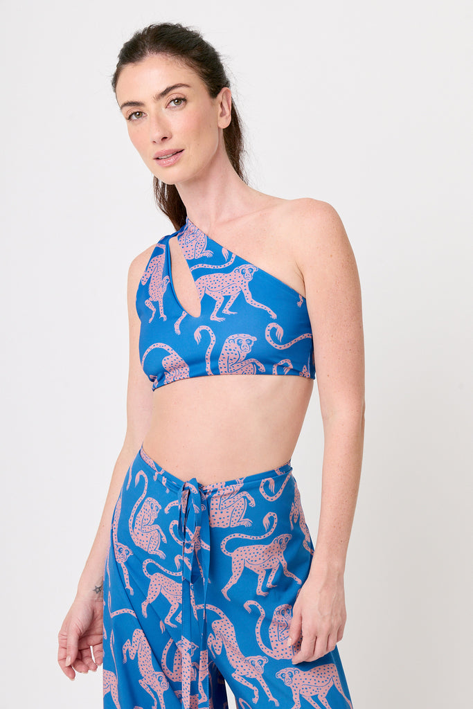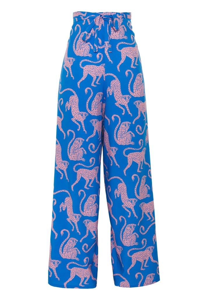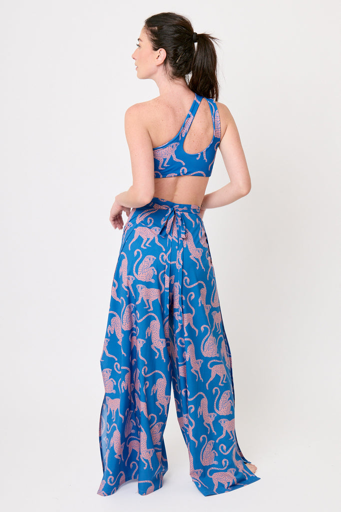 Pantalón/pareo amplio con amarre cruzado estampado en changos rosas